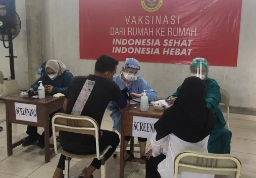 TANGERANG – Badan Intelijen Negara (BIN) bekerjasama dengan Dinas Kesehatan (Dinkes) Kabupaten Tangerang menggelar vaksinasi Covid-19 untuk masyarakat di Kelurahan Kuta Baru, Kecamatan Pasarkemis, Kabupaten Tangerang (14/7/2021).